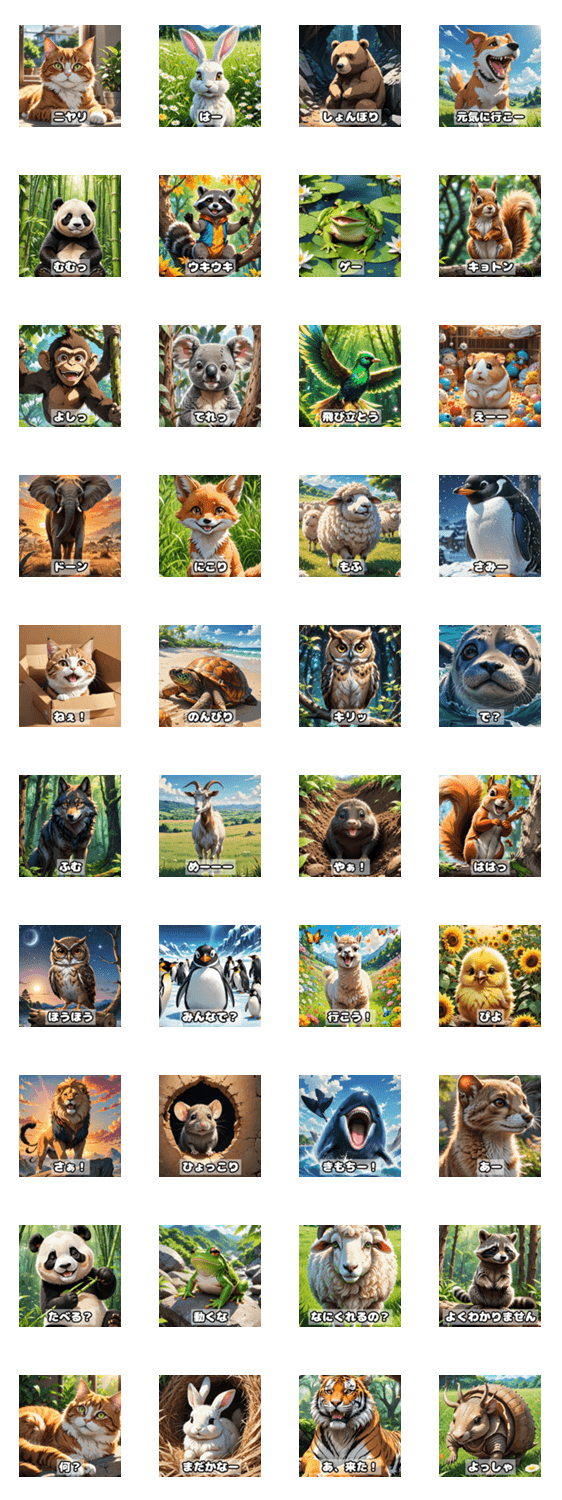 ぷにっと二頭身の動物たちがトークを楽しく盛り上げる!日常も使える、かわいくて便利なスタンプです