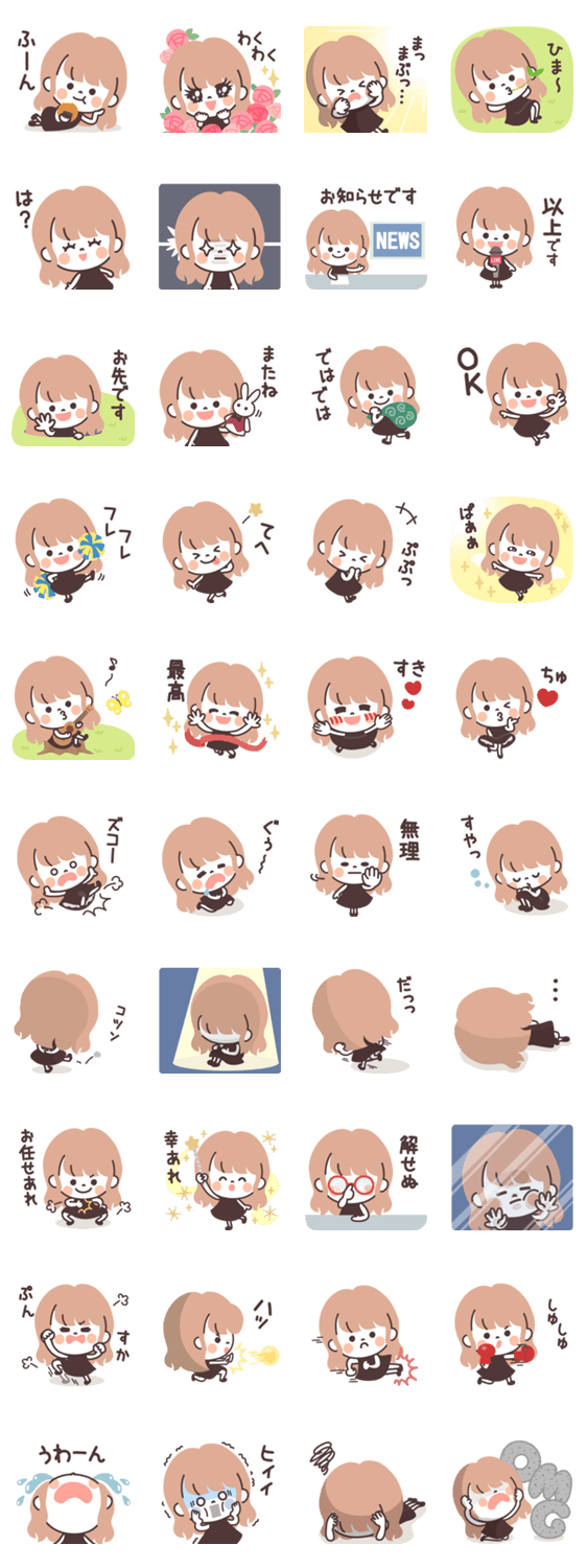 甘さ控えめ大人女子♪ロングちゃんクスッと笑える姿.仕草.動きあり。喜怒哀楽.毒舌.シュール.塩対応まで表情豊か。年中ずっと毎日使える.ママ友Longカップル