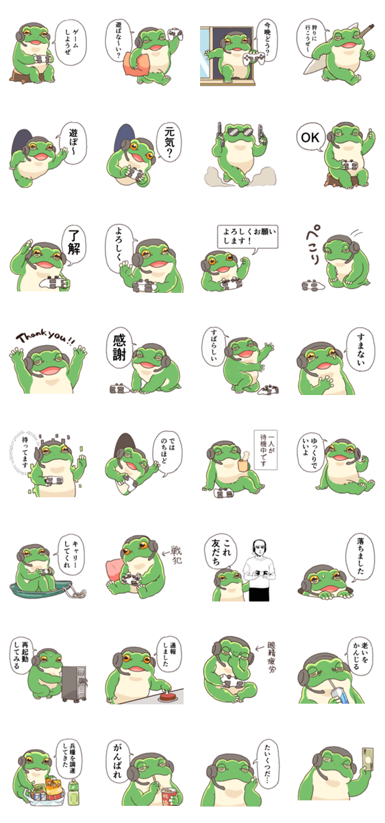 ゲームのお誘いに使いやすいカエルのスタンプです。カエル好きさんにどうぞ。