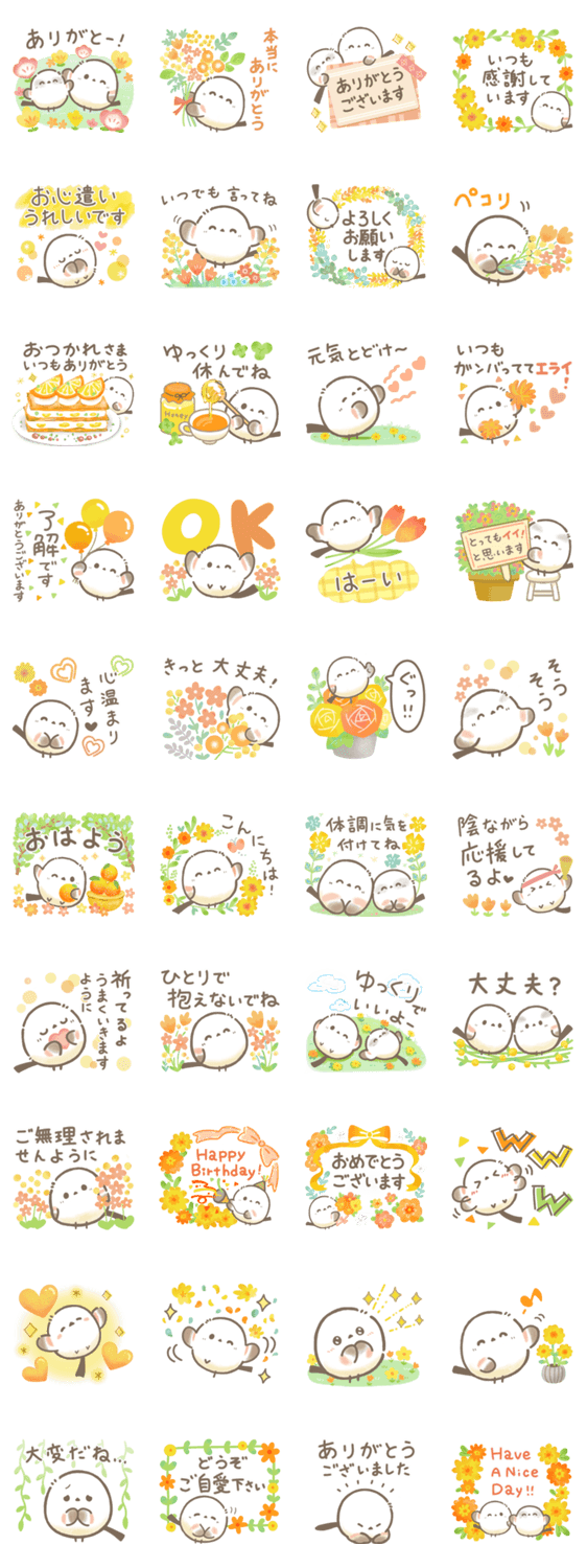 思いやりの言葉たくさん、エナガさんとシマエナガさんのスタンプです。/敬語/白いことり/便利/日常/やさしい