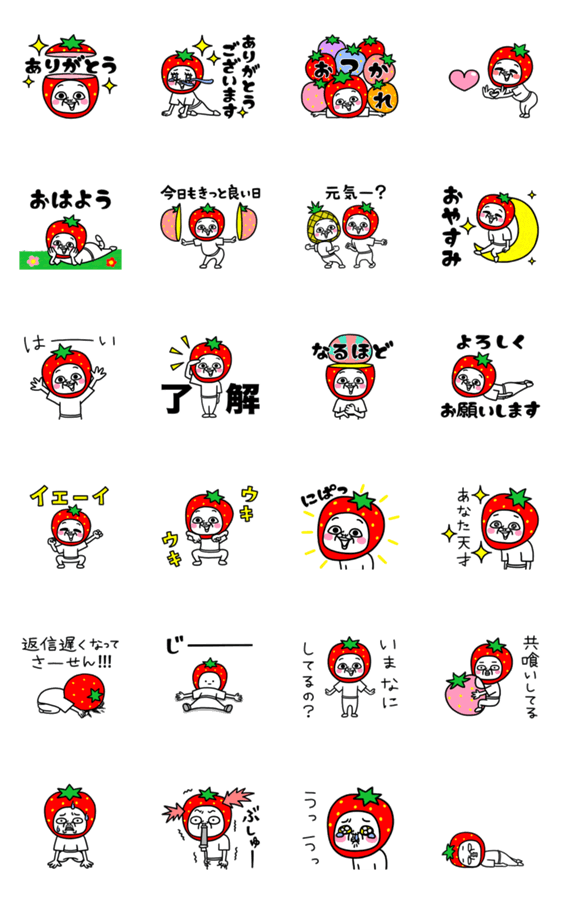 マイペースに生きる人々のためのシュールで自由なナンセンスなスタンプ!ジューシーな苺星人バージョンです♪