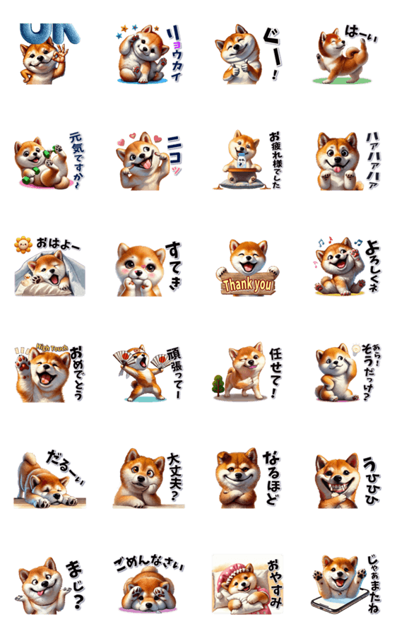 「柴犬の癒し系おもしろスタンプ!」 おちゃめな柴犬さんが、あなたのトークを盛り上げます!元気いっぱい、ちょっととぼけた表情のスタンプで、毎日の会話をもっと楽しく