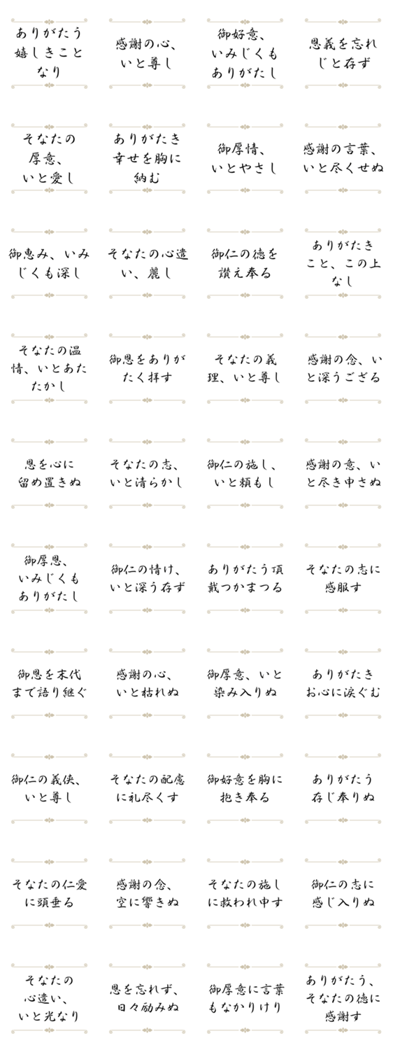 平安時代の言葉で感謝を伝えます。ありがとう感謝お礼。友達友人学生家族恋人仕事。毎日使える。ずっと使える。日常言葉。