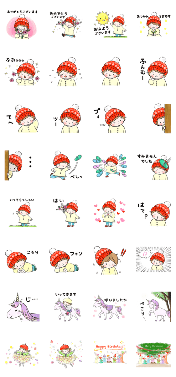 森に暮らす小さな小人・マリア。踊ったり、笑ったり、時にはすねたり…。ふんわり水彩タッチの癒しスタンプで、毎日をやさしく彩ります。[手描きイラスト/敬語/日常]