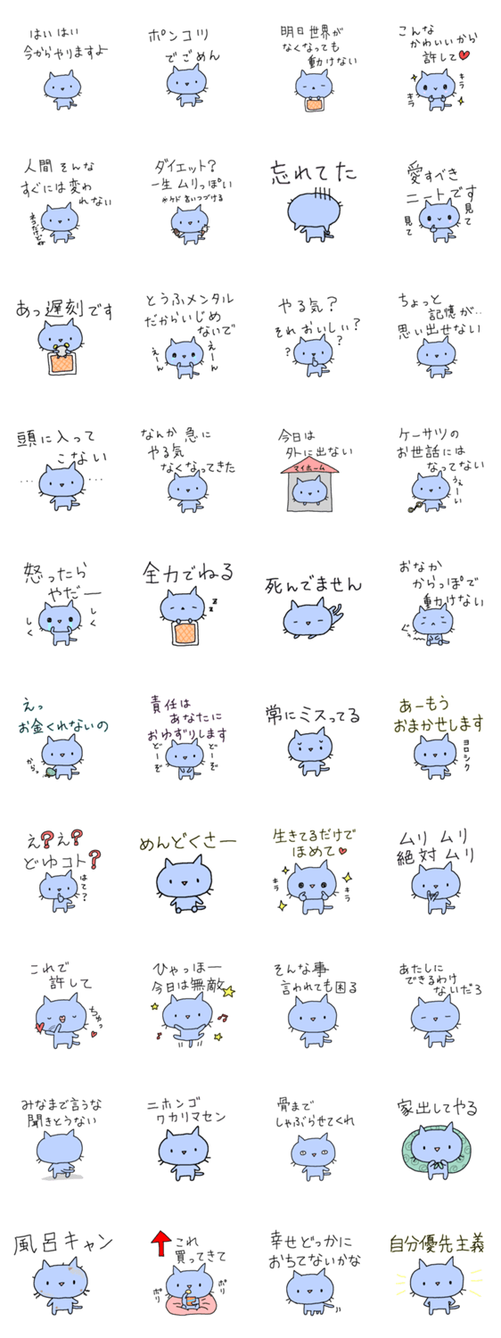 適当に生きてる青い猫のスタンプ!
