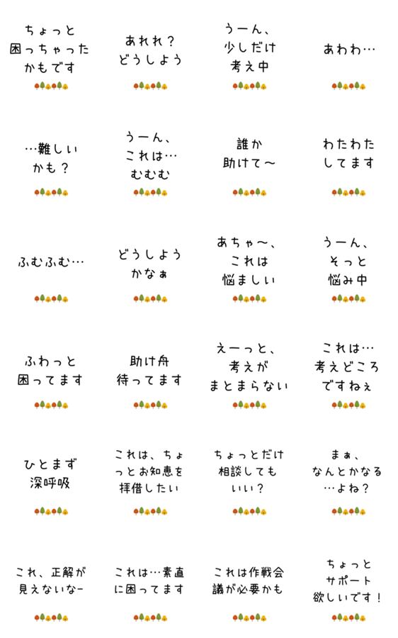 困っているとき、助けてほしいとき、送るスタンプ。仕事友人友達学生家族恋人ビジネス。毎日使える日常言葉。