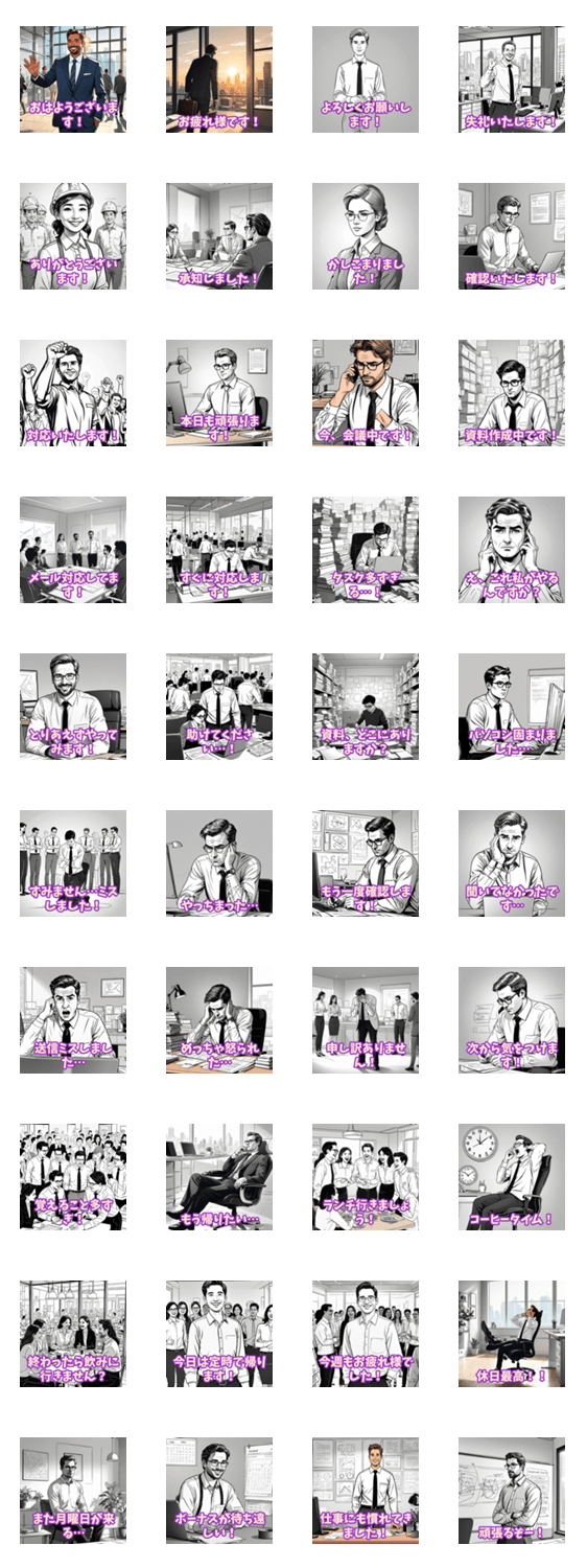 「承知しました!」新社会人の気持ちをそのままスタンプにしました!仕事の挨拶やリアクション、やらかした時の「すみません…!」まで、使えるフレーズが満載!