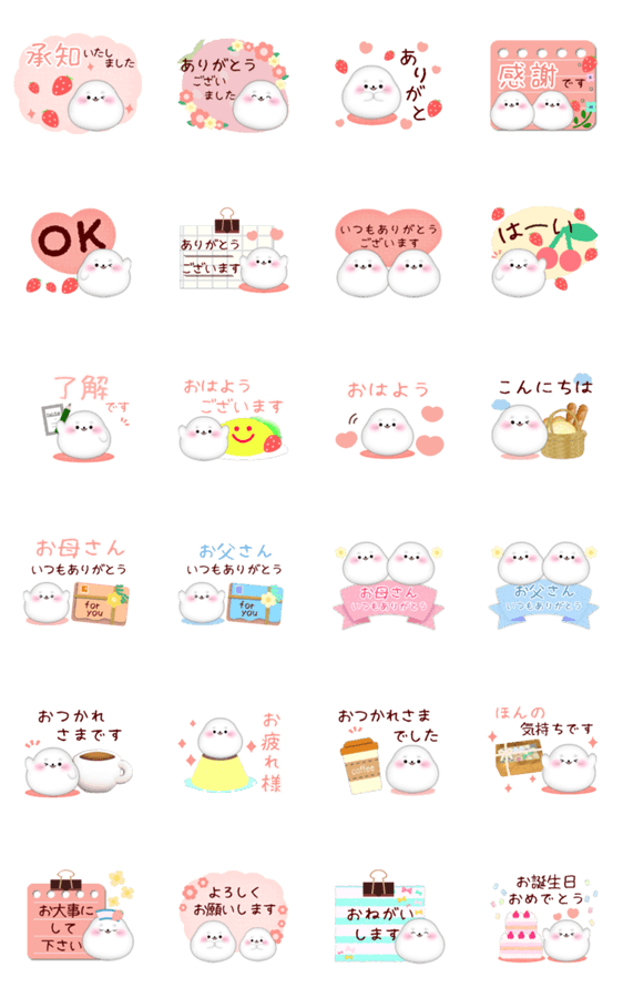 【アザラシです】ふわふわアザラシの文字が動くスタンプ/いちご/イチゴ/苺/母の日/父の日/挨拶/敬語/丁寧語/承知致しました/おめでとう/了解/ありがとう/mamama-chin