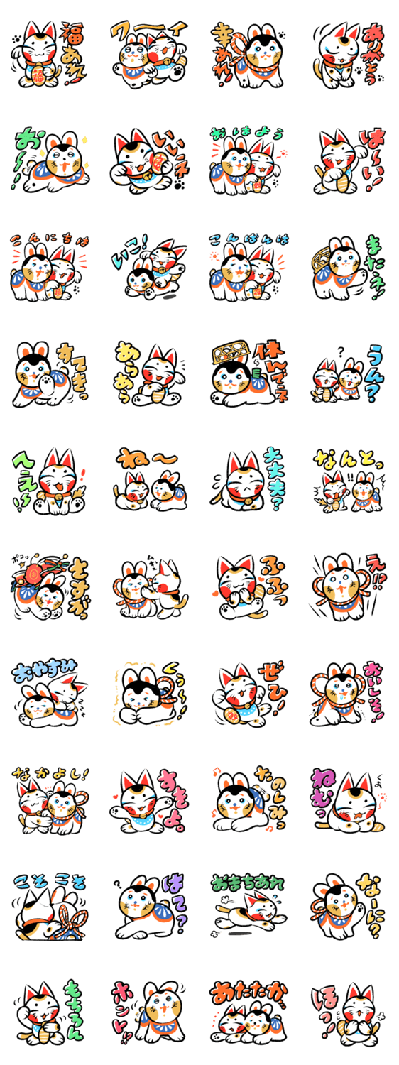 張子犬のはりこと招き猫のマネキ、あいづちスタンプ集! あなたの幸せをのんびりめでたく見守っています。 良きことあれ!
