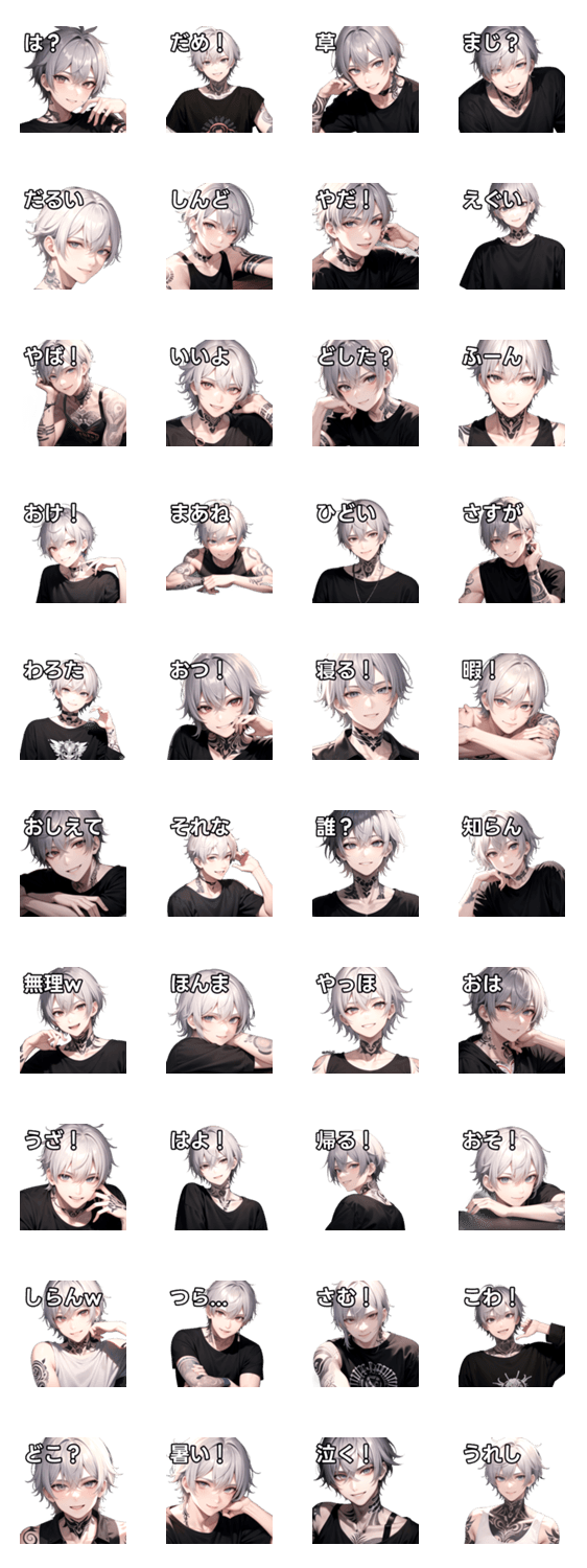 カジュアルな銀髪タトゥー男子1 -LINEスタンプマニア