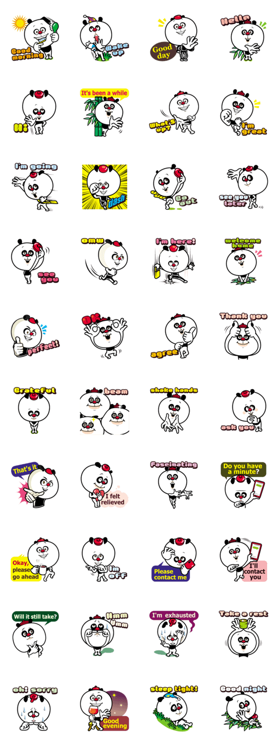 ちょっとシュール顔でオチャメなパンパンダのシンプルで使いやすいスタンプです。文字なし版と日本語版もあります。