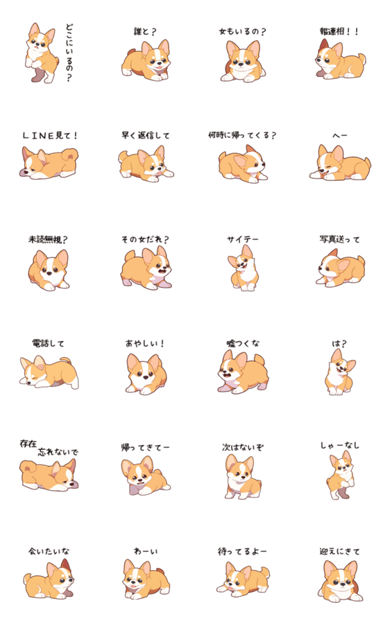 【可愛く嫉妬】コーギー -LINEスタンプマニア