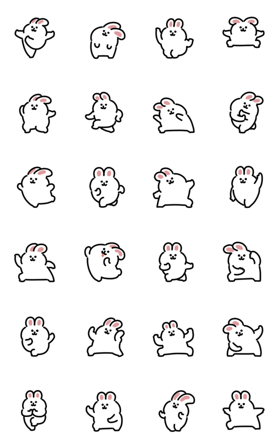 踊る兎のアニメーションスタンプです。うさぎ/おどる/面白い/楽しい/笑顔/手書き/ゆるい/癒し/文字なし/ゆるかわ/シンプル/使いやすい
