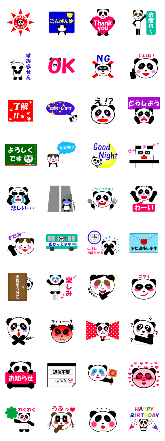 サングラスをかけたパンダのスタンプです。パンダがいっぱい。