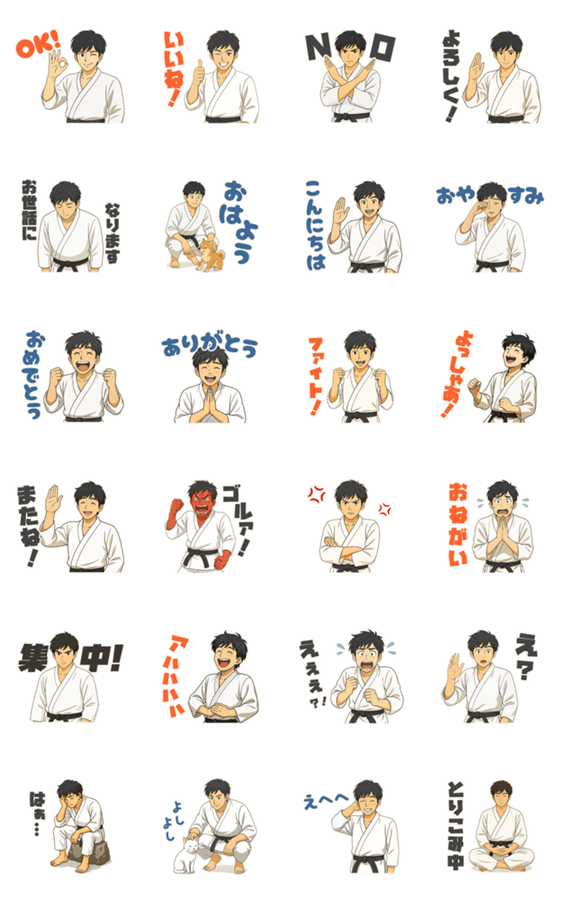 空手や柔道など、武道黒帯の男の子をイメージしたスタンプです。
