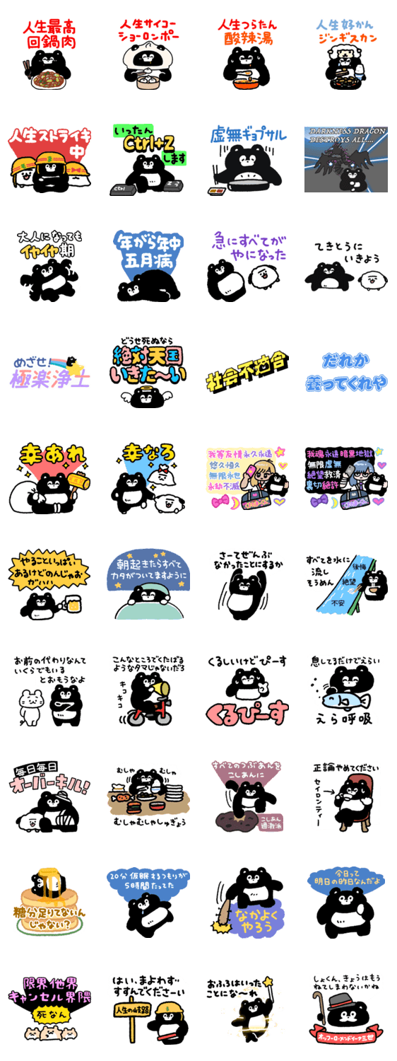 くまのまーくんの名言っぽいようなそうでもないようなものを集めたスタンプシリーズの第1弾です。ポジティブとネガティブをバランスよく配合しました。 人生最高回鍋肉!