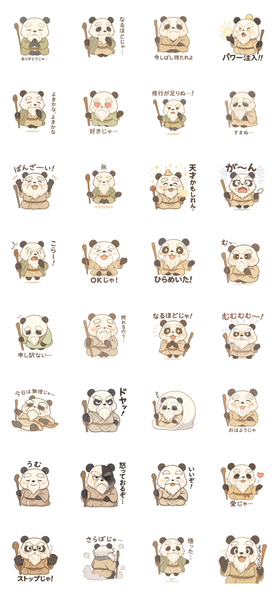 見た目はゆるいが心は賢者!? パンダ仙人があなたの会話に笑いと癒しをお届け。使いやすさもバッチリで若者&主婦に大人気。動物、アニメ好きにおすすめ。