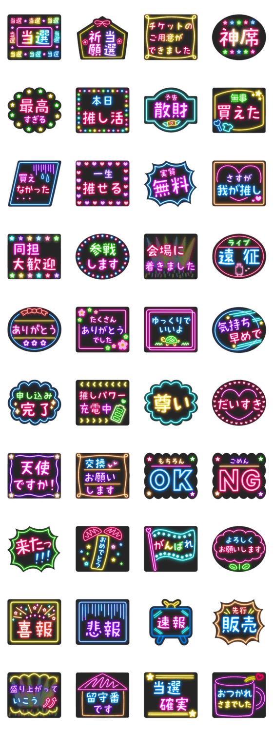 推し活に使えるネオンサイン風スタンプです。当選/当選祈願/一生推せる/遠征…など ★推し活 ★推し事 ★オタク