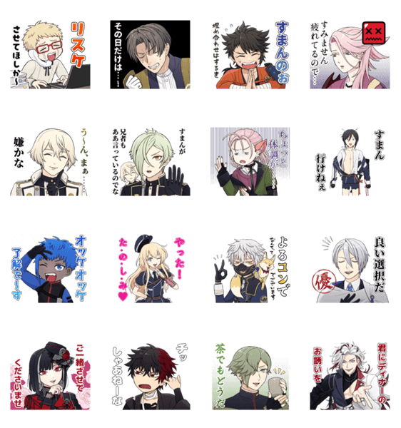お断り8種+OK6種+お誘い2種です。 ※LINE Creators Collaboration『刀剣乱舞ONLINE』参加スタンプです。