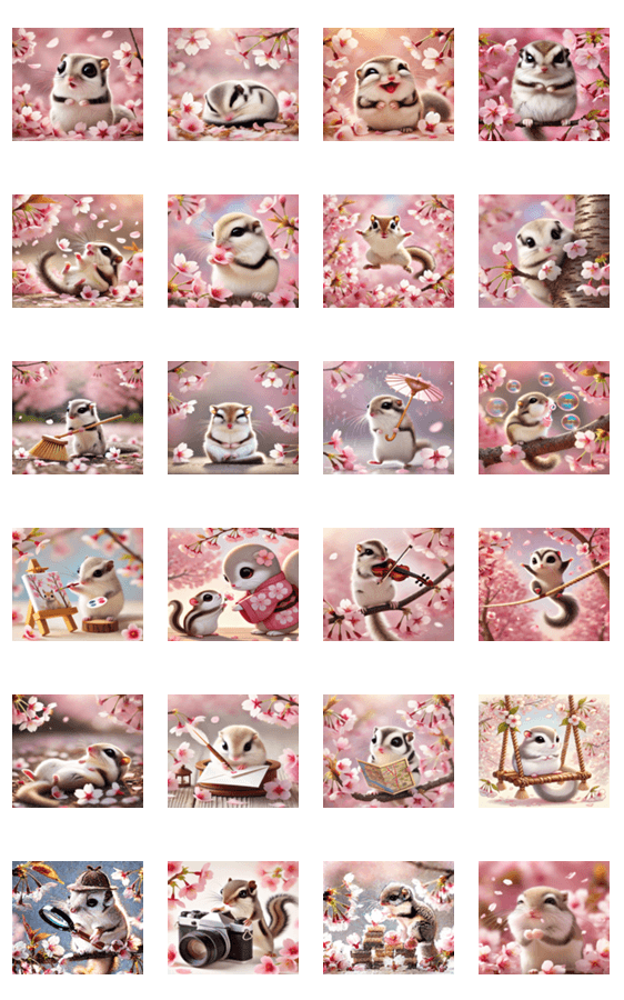 モモンガと桜をテーマにした、ふわふわ可愛いスタンプセットです。癒しの会話にぴったりです!