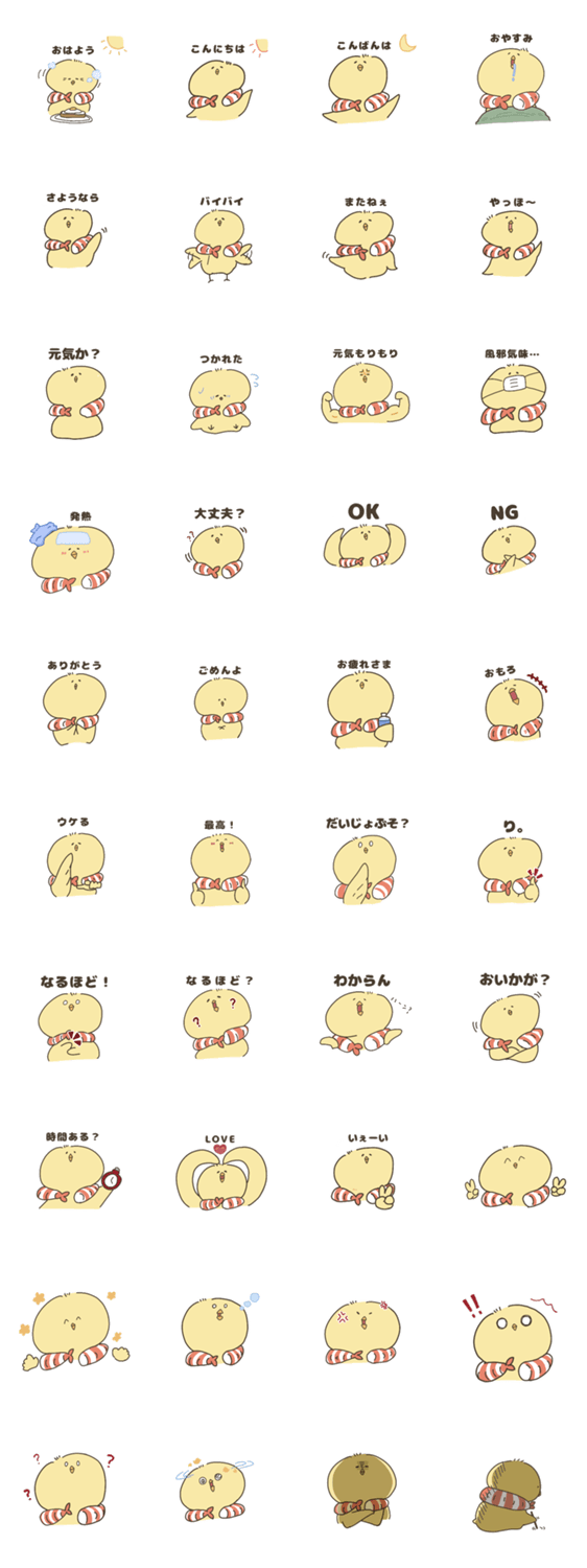 えびを巻いたひよこ『えびぴよ』のスタンプの1つ目です。