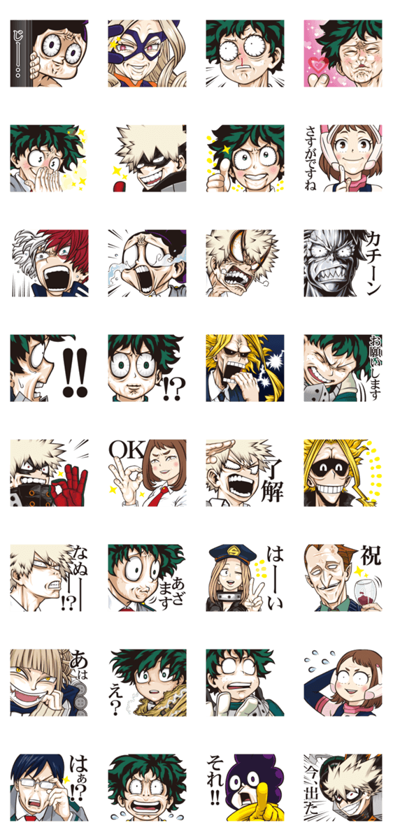少し変顔がうざい僕のヒーローアカデミアのスタンプです。よく使う言葉でウザく煽る!デク・爆豪・麗日!みんなの変顔、しろめ爆弾、微妙にうざいシリーズのスタンプ69作 ※LINE Creators Collaboration 僕のヒーローアカデミア参加スタンプです。