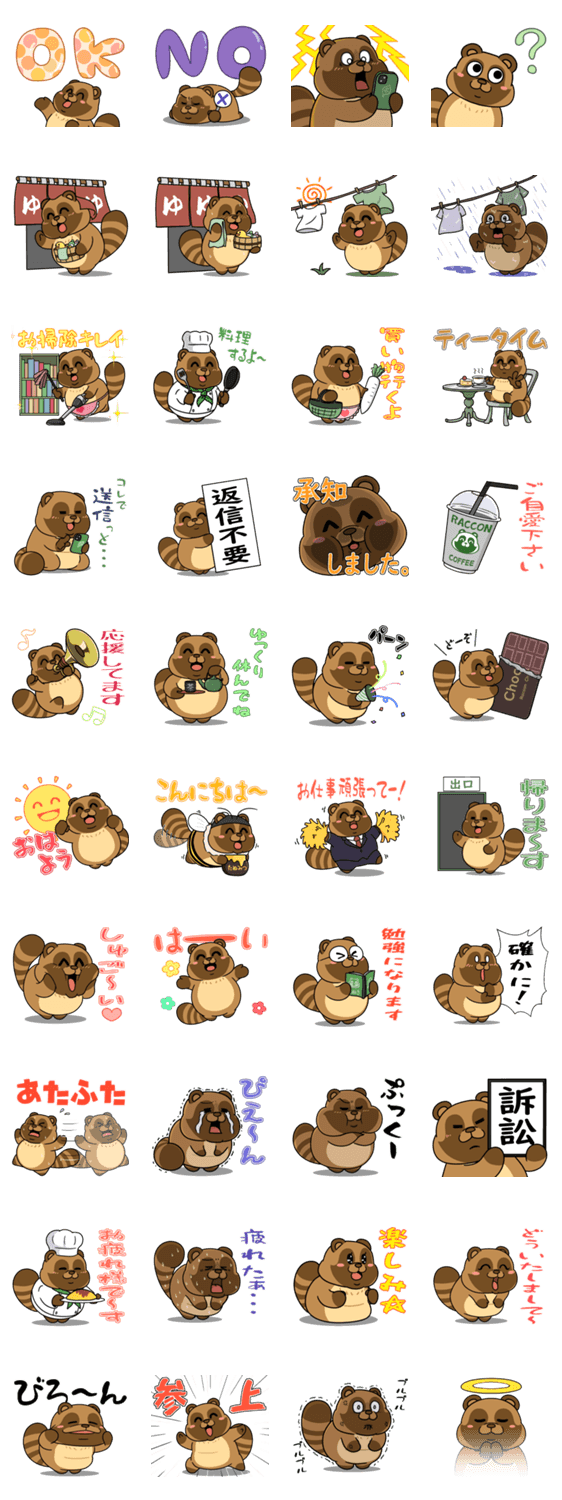 太っちょたぬきの日常で便利に使えるリアクションや言葉を集めたスタンプです。(たぬき/敬語/デブ/太い)