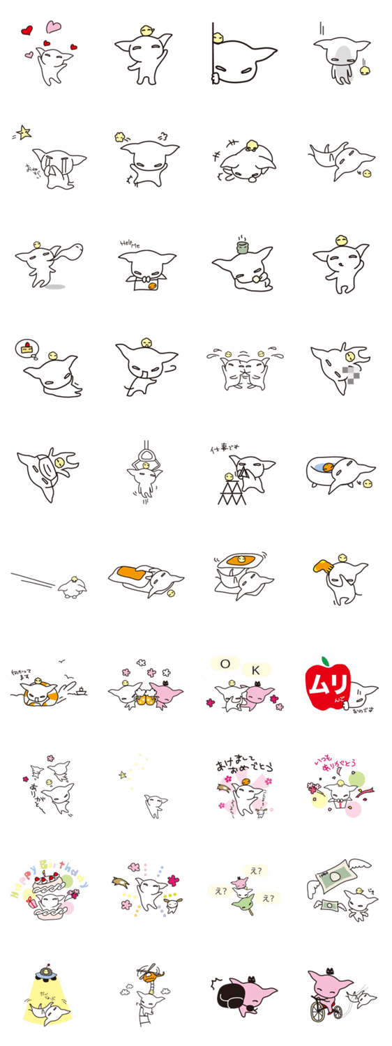 白目を剥いたチワワのおとぼけスタンプです。一緒にいるのはポテチちゃんです。
