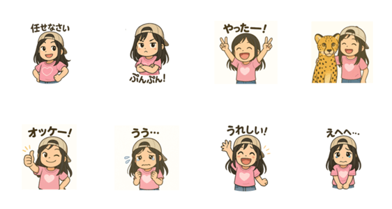 毎日使える!表情豊かな女の子のスタンプ。喜び・涙・怒り・照れなど、いろんな気持ちをかわいく伝えます
