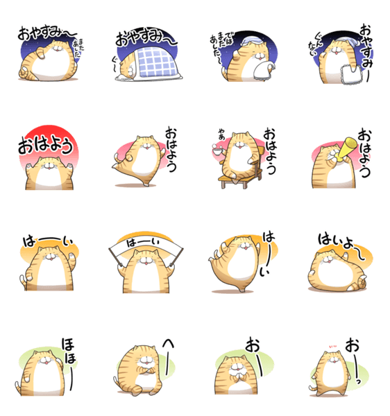 丸い茶トラの挨拶と相づちに特化したスタンプです