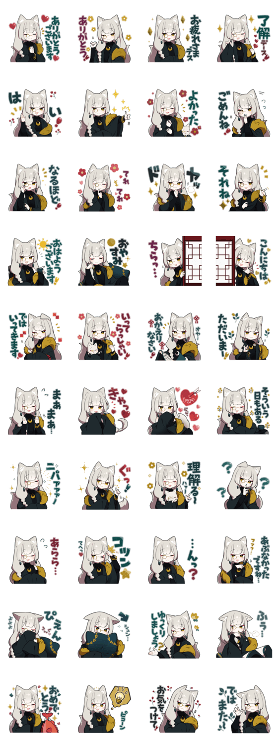 ちょっとあやしいねこさんのスタンプです。友達や恋人、家族と毎日使える日常会話、リアクションや挨拶が沢山入っています。