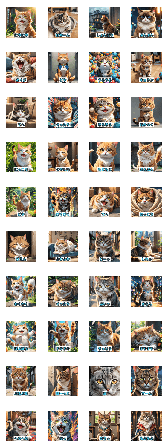 ゆる〜い表情と気ままなネコたちが、あなたの感情を代弁してくれるスタンプです。日常会話に、ちょっとした一言に、ぜひどうぞ!