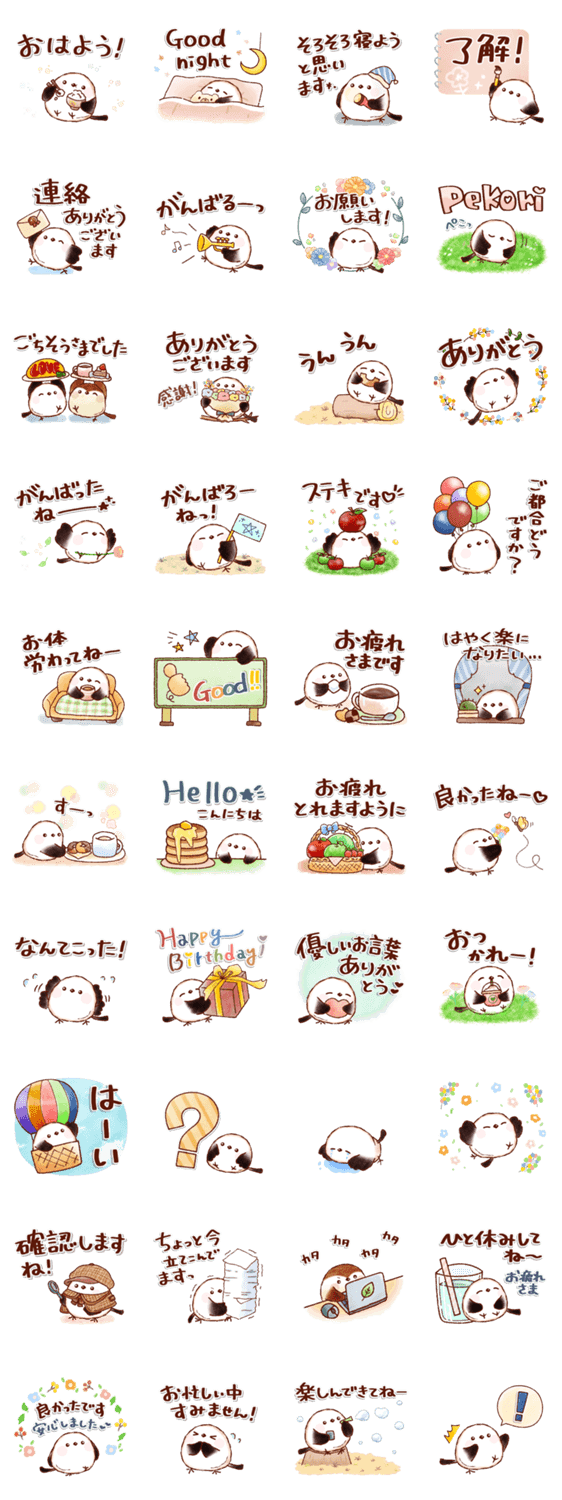 ふんわりとした優しい色合いで描かれたシマエナガちゃんのスタンプ2です。お友達のスズメさんもいます。挨拶/お返事/敬語/丁寧/気遣い/思いやり/大人かわいい/日常/毎日