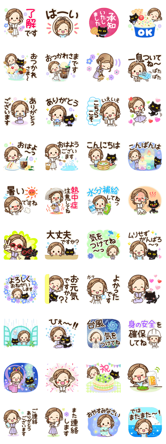 夏に便利な大人女子スタンプ♡ず〜っと使える言葉・敬語、挨拶♩天気・梅雨・でか文字・誕生日・かわいい・黒猫・女の子※人気の過去作に改訂アレンジを加えた再販です♡