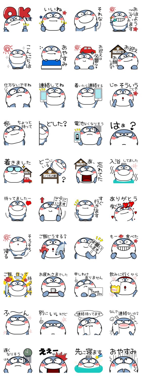 キュートなサメ(鮫、シャーク)。毎日使える、よく使う言葉を揃えました。主に家族の連絡用。これ一つあれば、ずっと使えます。