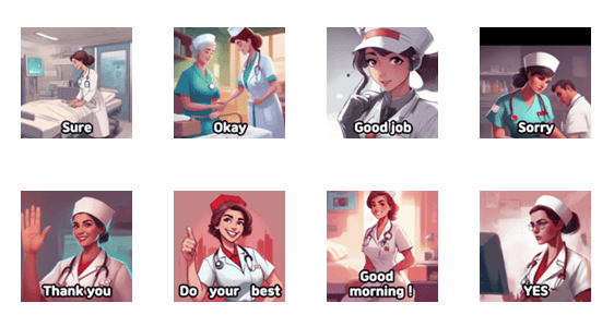 日常の感謝を込めた看護師スタンプ!微笑ましいキャラクターで心のこもったメッセージをお届けします。仕事や健康を祝福しましょう。"