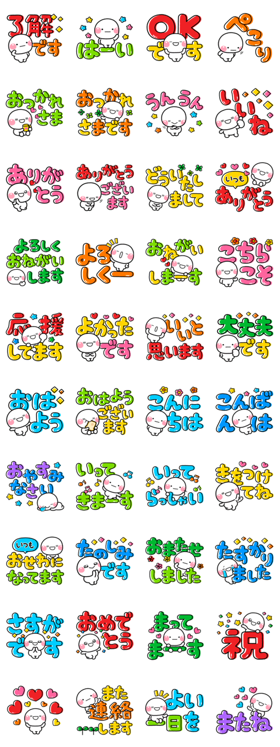 カラフルでポップな大人可愛い大きな文字で日常に使えるスタンプです。ずっと使える内容を揃えましたのでスタンプ初心者の方にもオススメです。【作:いしいともこ】