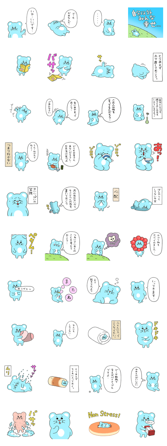 キューライス万博公式キャラクターの「マチュー」。 ものすごくネガティブな彼による、ネガティブスタンプ!