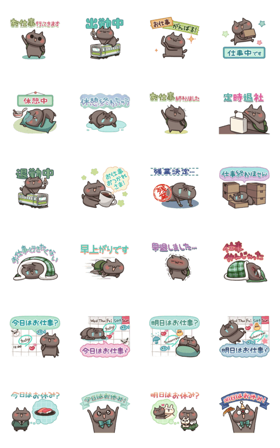 「ねこのくろ」の動くスタンプ第6弾の登場です!毎日のお仕事をとっても頑張る方々に!