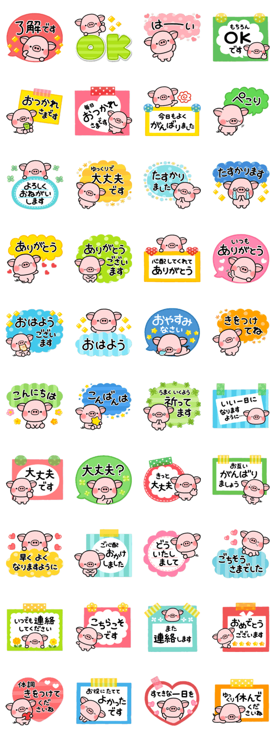 こぶたのぷーの相手の事を一番に考えたやさしい気遣いスタンプです。ずっと使える内容を揃えましたのでスタンプ初心者の方にもオススメです。【作:いしいともこ】
