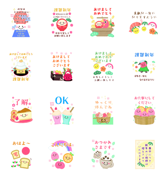 【お正月】年末年始の挨拶に使える冬の年賀スタンプ。お正月や大晦日に使いやすい。敬語/お正月/新年/年賀/あけましておめでとう/お大事に/年賀状/クリスマス/mamama-chin