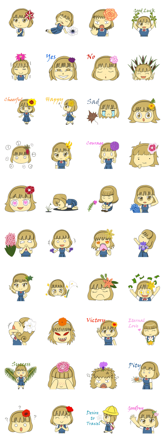 | スタンプ説明 | International meaning of flowers such as Yes & No, Happy & Sad, Love & Hate. Communicate with flower represent emotion & feeling in everyday include Valentine. |