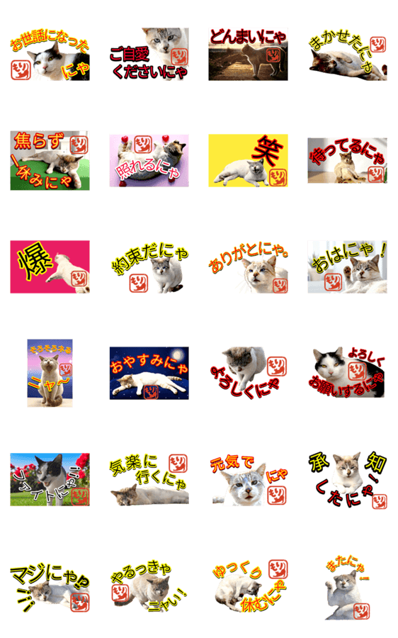 豊橋在住のフォトグラファー森下芳信の撮影した選りすぐりの写真から作成されたスタンプです。キュートで元気の出る完全オリジナル、ロゴ入り猫スタンプです。