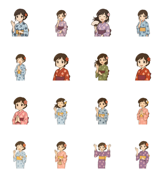 aiでつくった日本の浴衣を着た女の子のスタンプです。