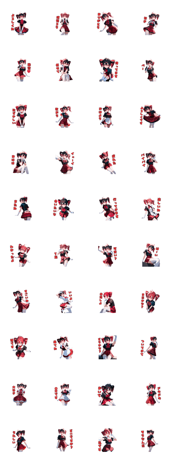 ツインテールが魅力の小悪魔ガールが、あなたのトークを盛り上げる!かわいさと悪戯心が詰まったスタンプです。