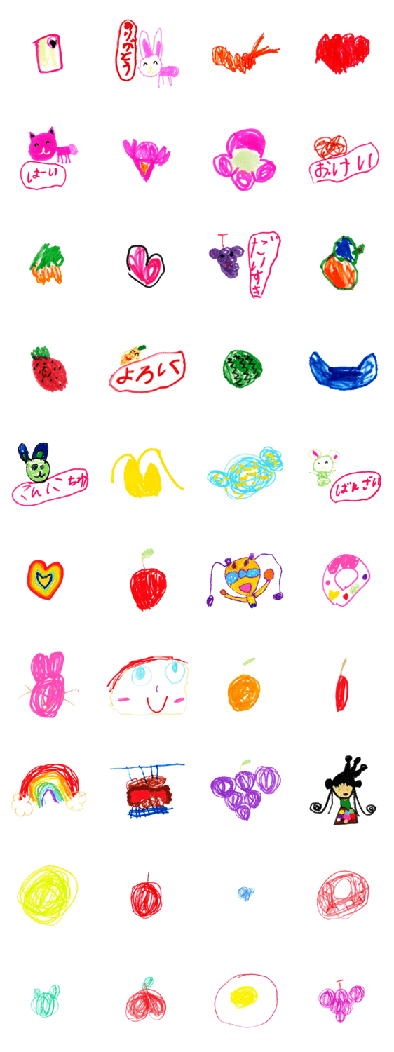 いろんな好きなのをかきました! (小学1年生の女の子の作品です)