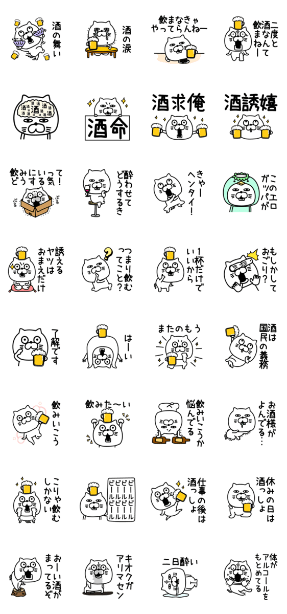 ねこたまっしぐら酒だビールだ -LINEスタンプマニア