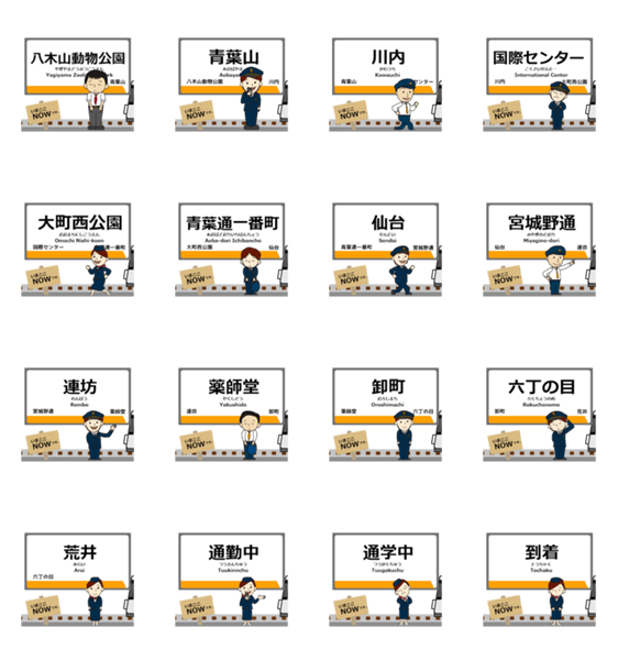 仙台,青葉通一番町,薬師堂,八木山動物公園,卸町,青葉山,連坊,六丁の目,荒井,宮城野通,川内,国際センター,大町西公園,便利で使いやすい鉄道駅名