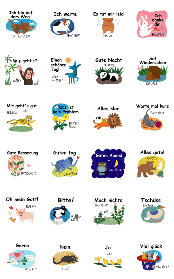 簡単な日常会話に使えるスタンプです。楽しくをドイツ語を使ってみよう。