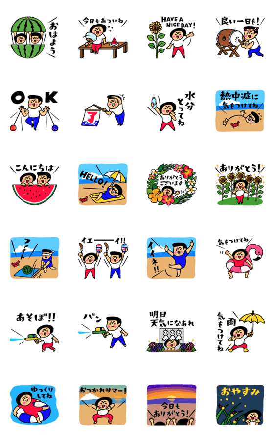 トモダチトークスタンプより、夏の季節に毎日使える動くスタンプの登場です!愉快で楽しい夏を過ごしましょー!(挨拶/スイカ/海/ひまわり/ハイビスカス/蛍/)